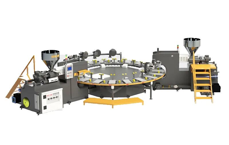 效率品質(zhì)雙在線!圓盤式(C型)兩頭雙色鞋底射出成型機(jī):雙色一次成型+精準(zhǔn)控溫,告別低效生產(chǎn)!